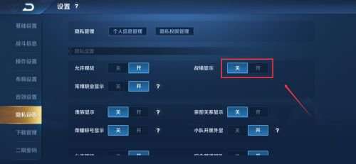 4、选择关闭,即可关闭战绩显示,其他玩家将看不到你的战绩。