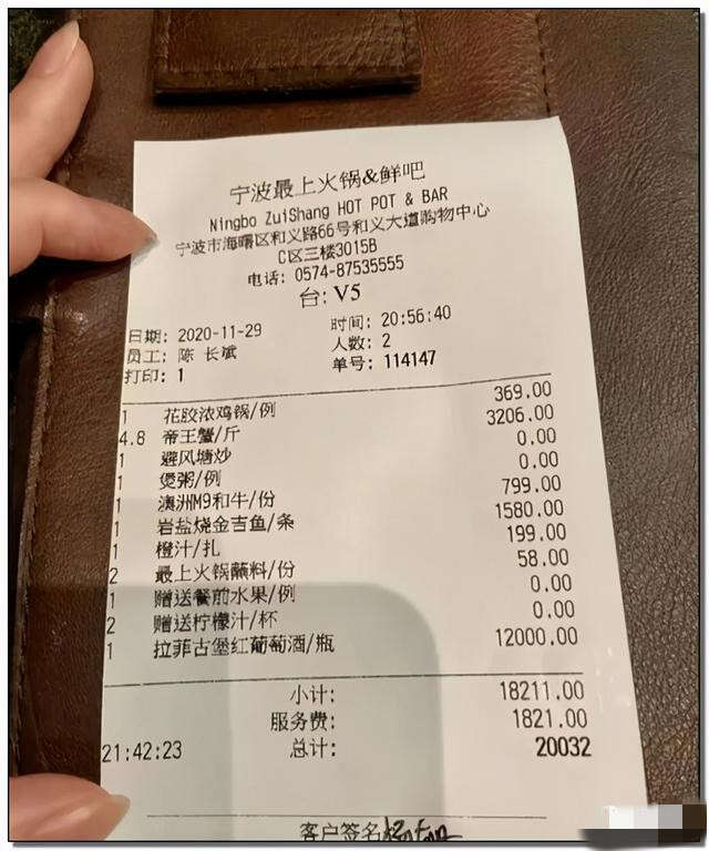 双方聊天也是很聊的来,男子便邀请杨女士吃饭。杨女士选择了一家名叫“最上火锅”的高档火锅店,这家火锅店是浙江最贵的火锅店。选定好位置后便发给男方。双方是一前一后到达餐馆。