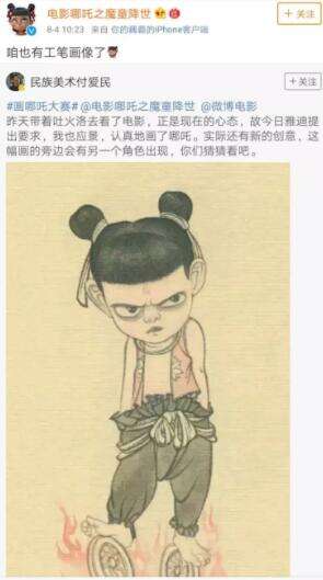 其实,小编觉得官微是不想引起不必要的误会,也怕给杨幂造成麻烦,随后,官微又发了别人画的哪吒,并配文称:咱也有工笔画像了。