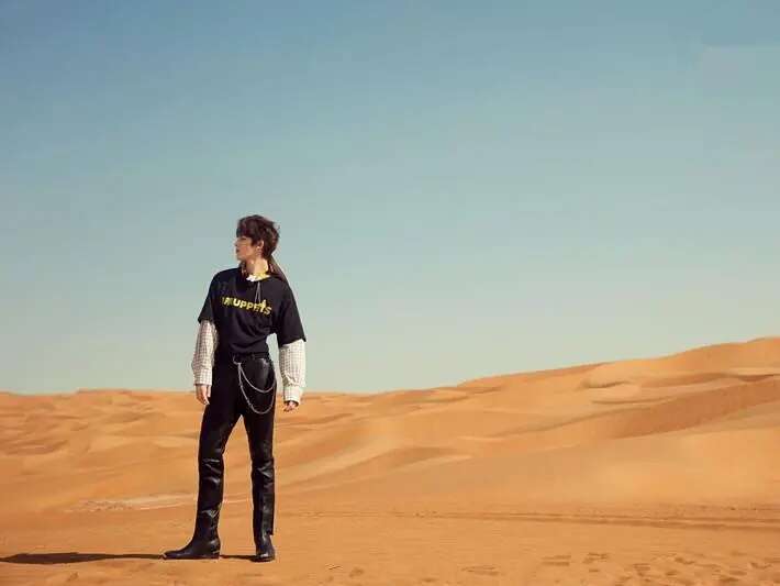 偶像练习生朱正廷大片来袭,大玩衬衫叠穿T恤,演绎别样的“沙漠之子”!