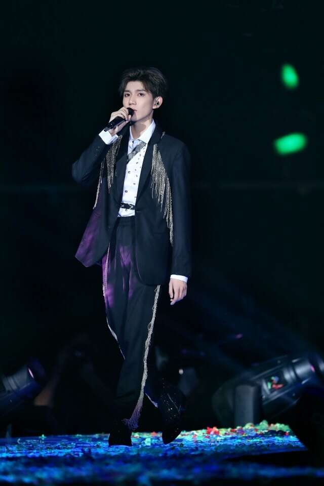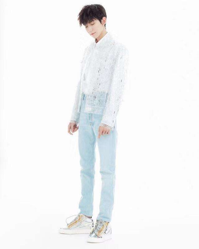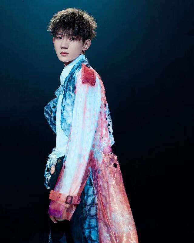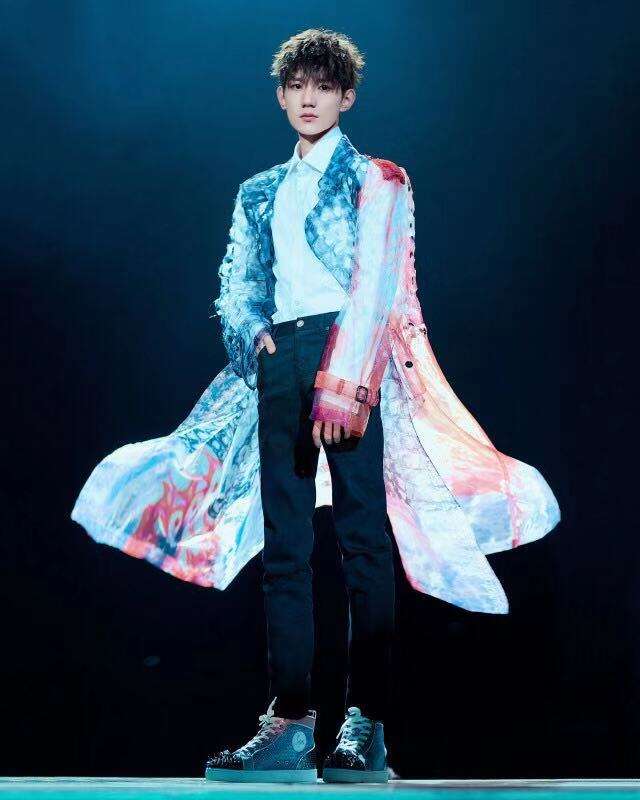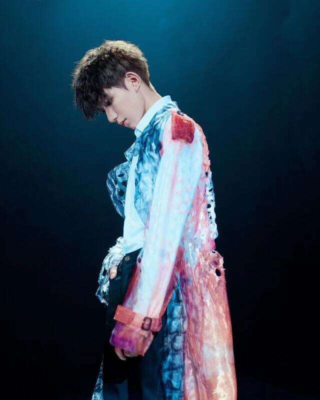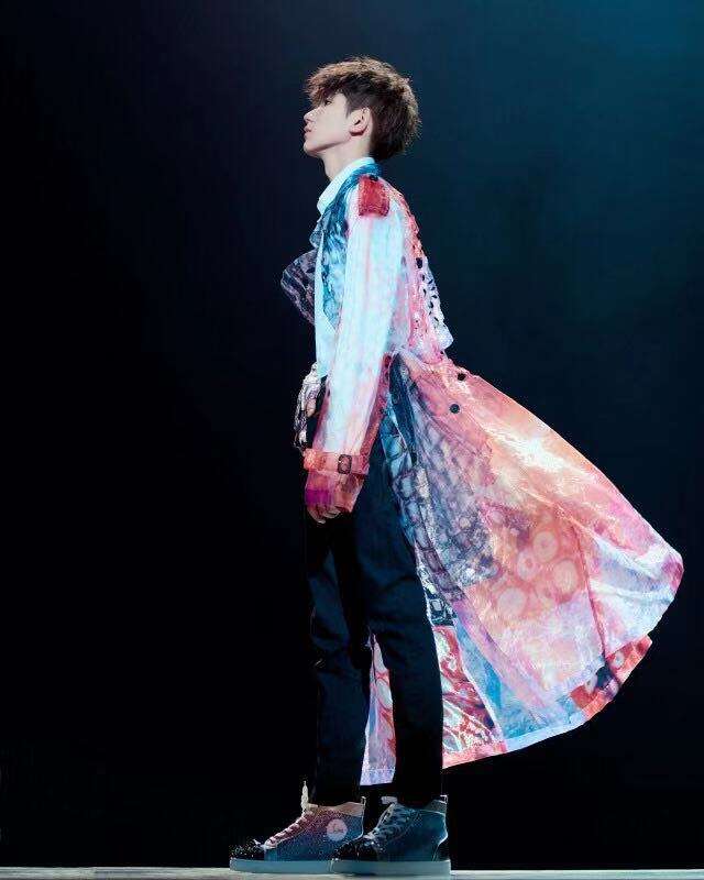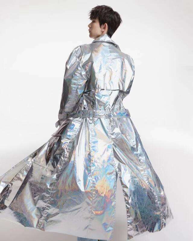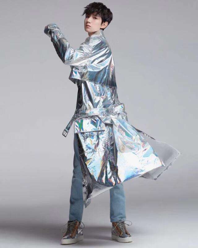 宽版银色风衣映照舞台的斑斓色彩,王源在光影之间展现真正的个性态度。