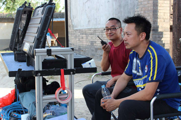 策划赵云斌(左)与导演凌雨(右)在拍摄现场