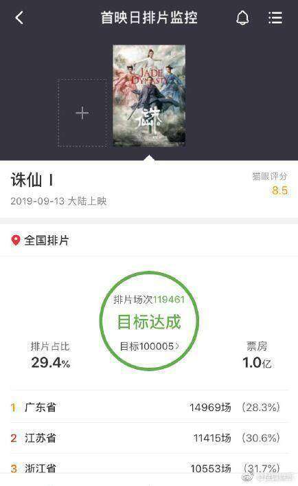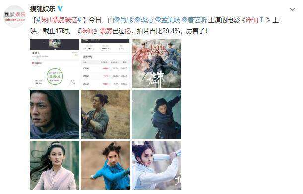 诛仙票房破亿 中秋档主力影片之首领跑累计票房榜
