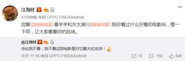汪海林导演更是直言诛仙我不看就是我对它最大的支持,当有粉丝反驳时汪海林却表示喜羊羊与灰太狼更好看嘲讽意味浓厚。