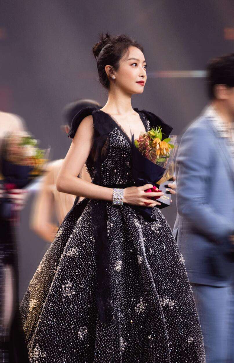 当晚宋茜两套造型惊艳亮相,身着雾紫千羽裙走过红毯,层叠羽毛呈现飘逸动人,席地裙摆勾勒摇曳生姿,徜徉于紫羽花海,明艳俏丽。之后宋茜换上黑色深V礼服进入盛典内场就坐,精致珍珠点缀典雅大气,丸子头增添可爱俏皮,提起裙摆款款而至,一举一动皆是风景。