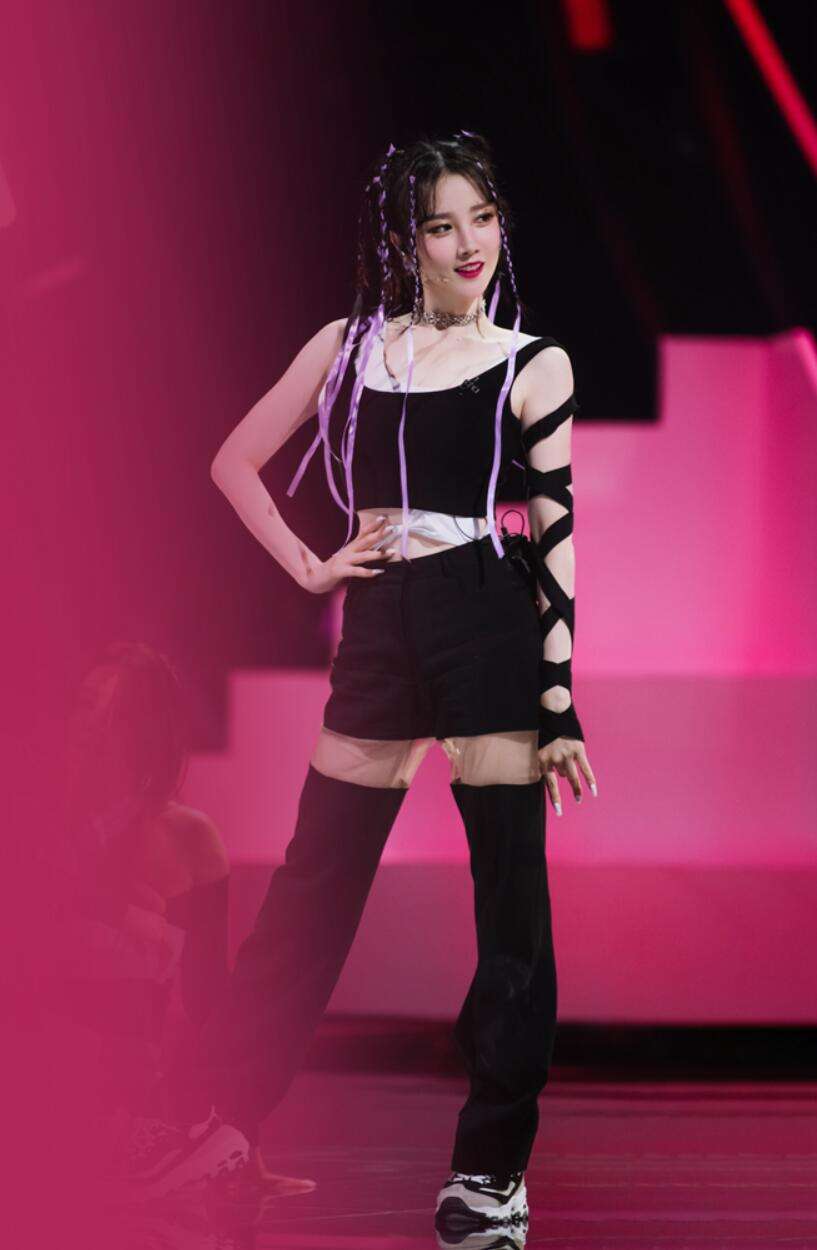 为配合曲风强劲的《孤寂者》,第三次公演陈小纭选择了极具酷飒感的脏辫造型,街头味十足。独特的紫色绸缎绑带设计,配合服装的层叠感,也为整个造型增添了些许灵动。连续三次公演舞台,从甜美风、冷艳风再到的街头风,陈小纭的每一次亮相都让人眼前一亮,造型可塑性极强。