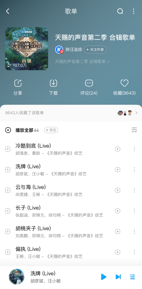 不知不觉,《天赐的声音2》已经陪伴大家从深冬到初春,在过去9期节目中,音乐合伙人和飞行音乐人们带来了超60场精彩绝伦的音乐表演。3月19日周五晚22点,THE9安崎、上官喜爱、赵泳鑫、lambertlj、阿兰、黄霄雲将强强来袭,谁将引发音乐合伙人大型抢人现场?谁又将获得当期推荐金曲?节目音频将同步上线酷狗音乐,记得收藏歌单,聆听天籁之声。