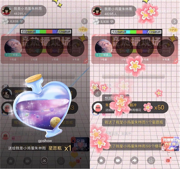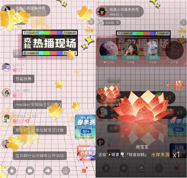 在与粉丝互动环节,朱林雨与粉丝连麦玩了好几轮游戏,报菜名游戏、百家姓接力说明星,轻松好玩的游戏让整个直播间气氛变得轻松、热闹,游戏输了的朱林雨也大方接受了粉丝们给的惩罚。