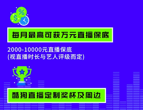 值得强调的是,酷狗直播还为音乐人提供了相当可观的收入保障。根据直播时长以及艺人评级,参赛者每月最高可获得万元直播保底,将流量转换为实打实看得见的收入,为音乐逐梦之路奠定坚实基础。