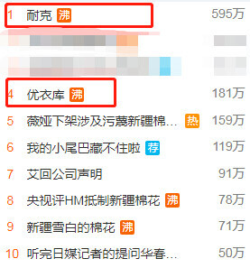 继H&M集团涉疆言论引发众怒之后,今晨(25日),优衣库和耐克也登上微博热搜。