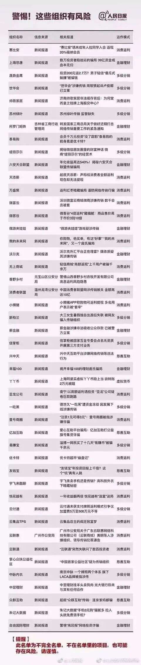 标题:扩散!这些都是传销!公安部最新名单出炉,沾上就血本无归!