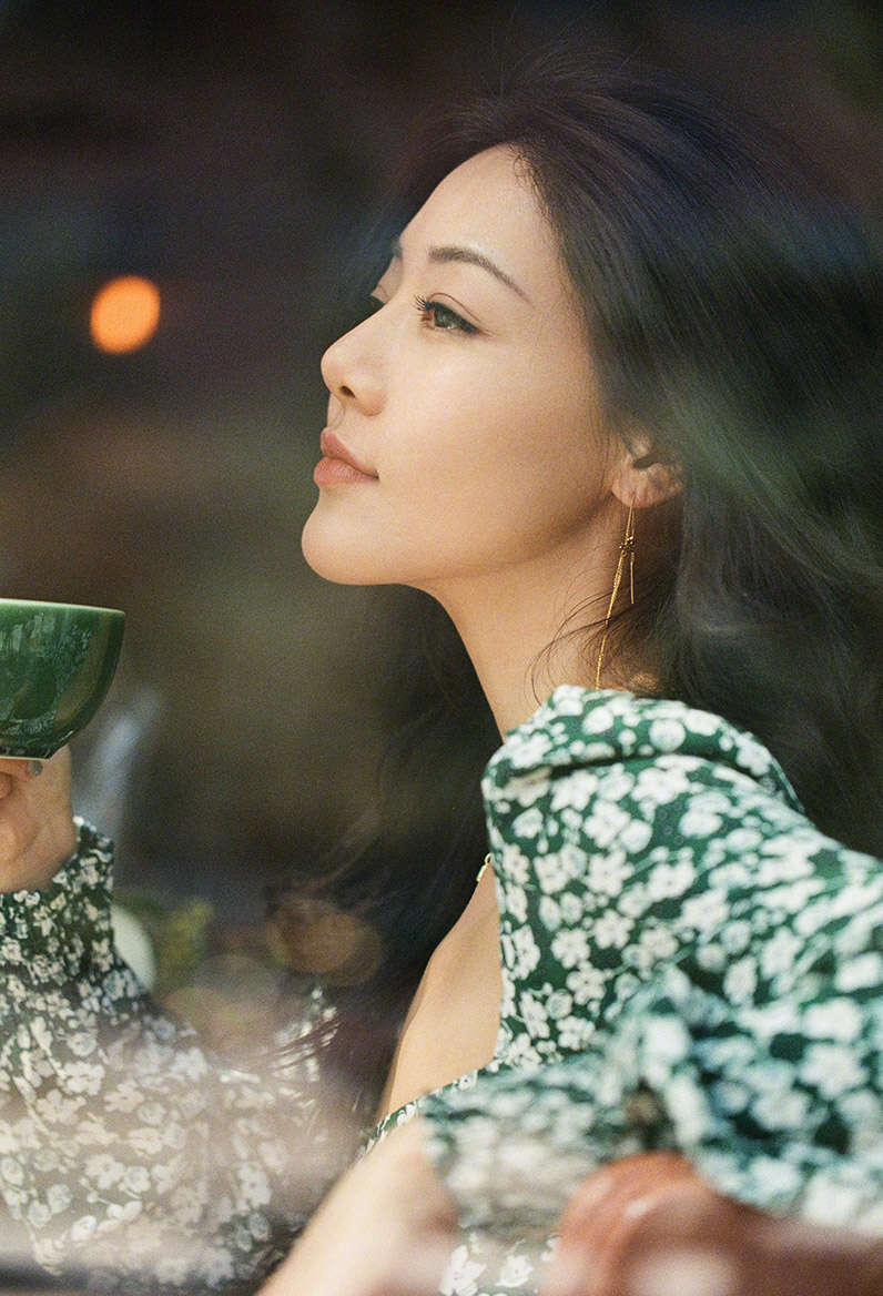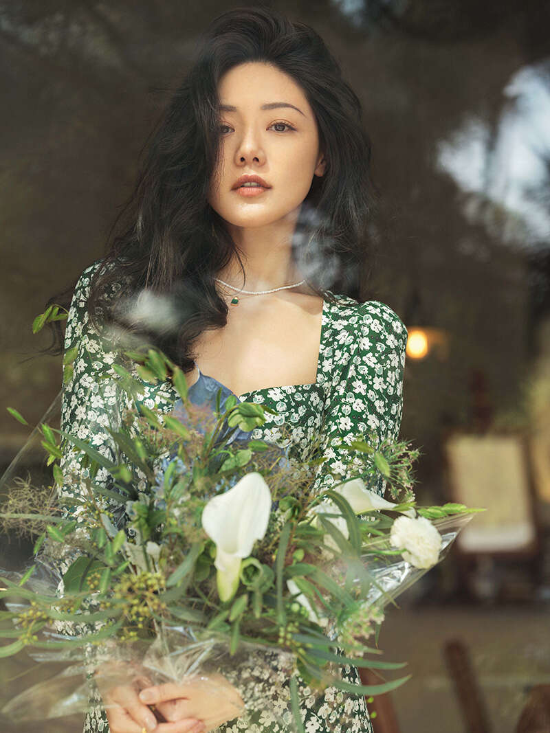 写真中,邓家佳身着绿色方领碎花长裙搭配微卷长发,尽显法式慵懒优雅风范。颈间珍珠项链和祖母绿珠宝项链的点缀,更是为其周身气质增添一分矜贵气息。面对镜头,邓家佳或自信而立或低眸沉思,用安详恬静的姿态纯粹着生活的情调。眼神清澄而又坚定无畏,一如其对待作品的初心,出道多年始终潜心于作品,只为热爱,无关其他。