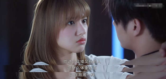 剧集前期,身高185cm的男主对着166cm的女主喊“矮子”:“你这个又矮又挫的人,凭什么体重过百,沉得跟猪一样。”