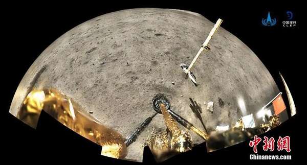 图为嫦娥五号着陆器和上升器组合体全景相机环拍成像,五星红旗在月面成功展开。国家航天局供图