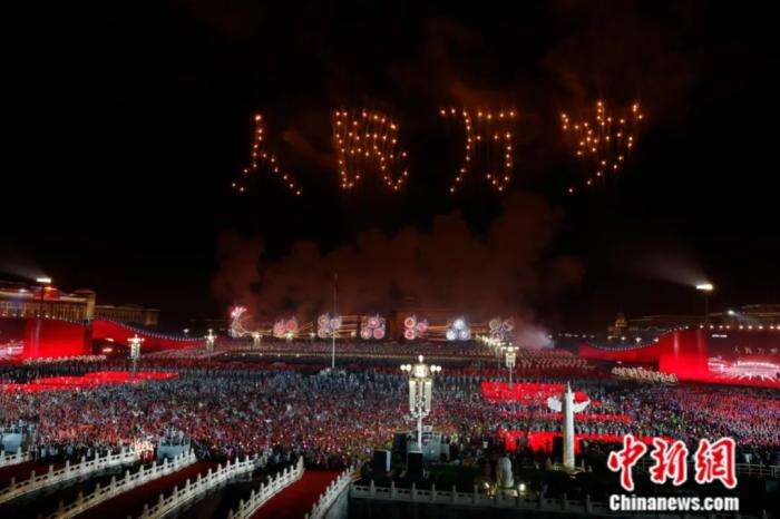 2019年10月1日晚,庆祝中华人民共和国成立70周年联欢活动在北京天安门广场举行。中新社记者 盛佳鹏 摄
