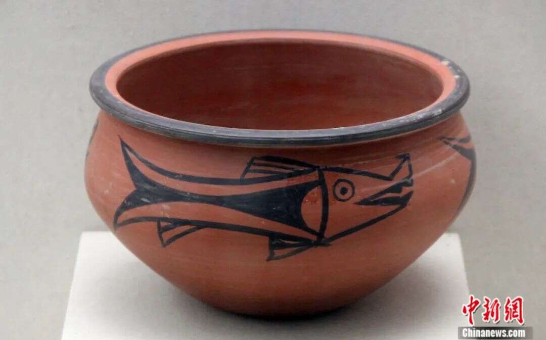 仰韶文化彩陶鱼纹。中新社发 成浩 摄