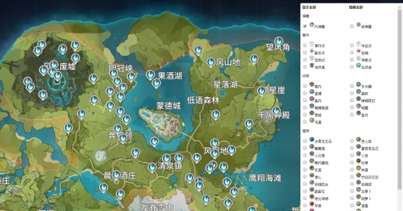 游侠网《原神》中文互动地图有众多的筛选选项,包括神瞳点、事件点、宝箱,以及各式各样的资源和收集品。再也不用在地图上晕头转向,朝着目标直线前进吧!