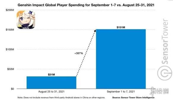 值得注意的是,这份数据统计的9.1-9.7《原神》的营收是不包括中国地区和其他第三方安卓平台的,实际营收会远超想象。《原神》2.1版本的首周收入,比前一周增长了387%,甚至比《原神》整个8月份的营收还要多。看来《原神》新版本加入的角色们和新内容,还是让国外玩家们欲罢不能的。