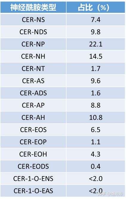 各类型的神经酰胺在角质层中神经酰胺的占比