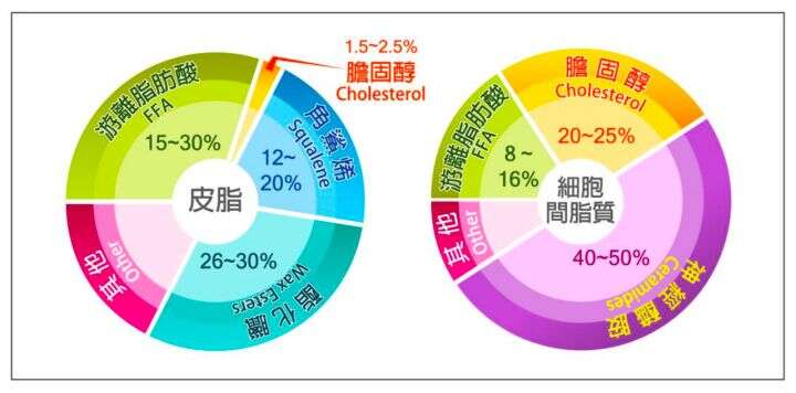 图 4:皮脂和细胞间脂质的成分构成(图片来自网络)
