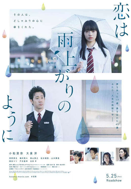 爱情片《恋如雨止》由 永井聪 导演,小松菜奈 大泉洋 清野菜名 矶村勇斗 叶山奖之 松本穗香 等主演,于 2018 年发行。