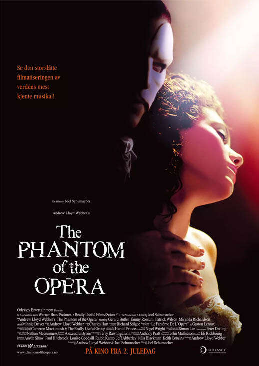 剧情片《歌剧魅影》由 乔・舒马赫 导演,杰拉德・巴特勒 埃米・罗森 帕特里克・威尔森 米兰达・理查森 明妮・德里弗 等主演,于 2004 年发行。