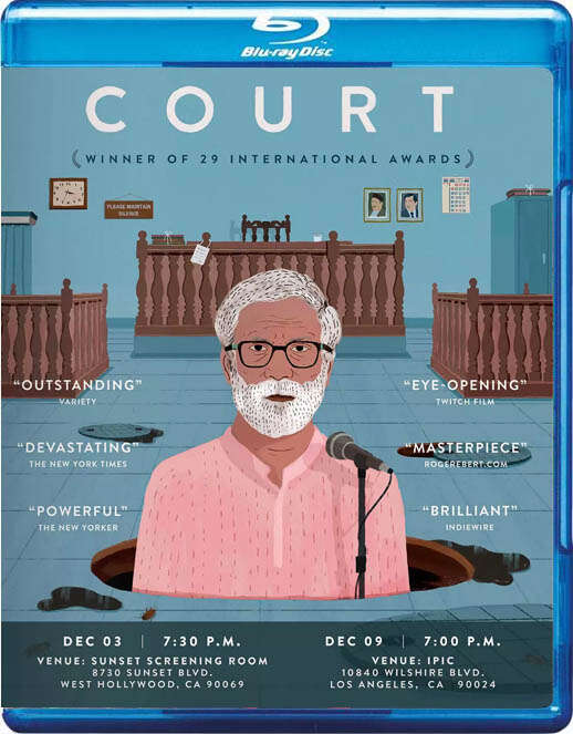 影片《法庭》被评为第71届威尼斯电影节地平线单元最佳影片。一位孟买下水道工人被发现陈尸于他的工作地点,死因竟然一首歌?65岁的民间歌手兼社运人仕被指控以歌曲教唆他人自杀。随着案件展开,死者和被告身世大起底, 连律师和法官的私生活也被评头品足。新扎编导首部电影即见真章,运用了新鲜的电影语言,以无稽荒谬情节和对白,揭示法治其实是人治的道理,再审视家庭背景与阶级如何建立不同的价值观,成就不同的社会。