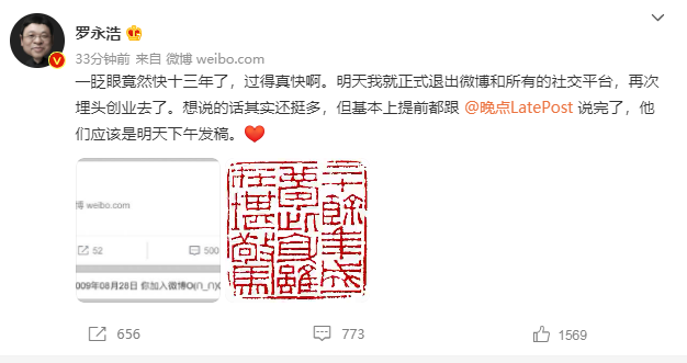 标题:罗永浩宣布退出所有社交平台将再次埋头创业