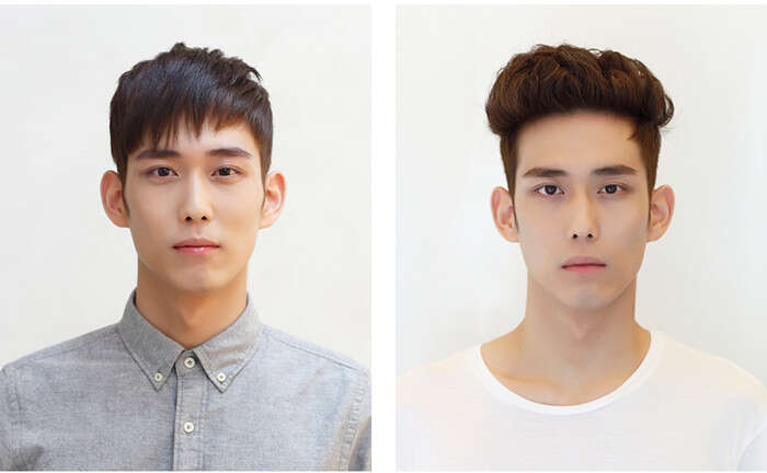 留背头发型的男人总能给人成熟稳重的感觉,处处透露出自信的霸气。今天小编要和大家分享两款韩式的背头发型,韩式背头发型和欧美以及国内的背头发型相比又有哪些不同点和亮点呢?一起来看看。 男人韩式背头发型一:首先这一款男士韩式背头发型更时尚一点,适合年轻的男生,整个发型采用沉稳有质感的棕色染发,增加发型的厚重感。 这一款发型也采用了时下很流行的一些设计元素,比如两侧简短但是又不剃光,完整的露出双耳更显得清爽,顶部的头发后梳并采用了烫发的设计,干净之余又增加了发型的灵动感。