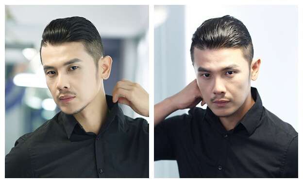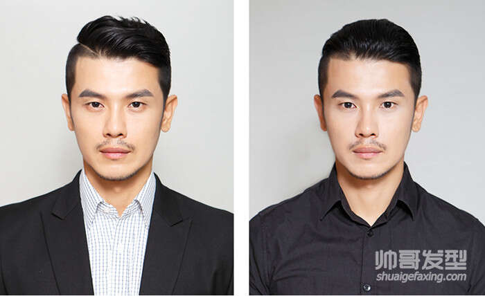 男人韩式背头发型二:第二款背头发型就是经典的油头发型样式,适合三十五岁以上的成熟男士。还有一个鲜明的特点就是两侧修剪的很短,搭配上小胡子霸气又帅气。 |