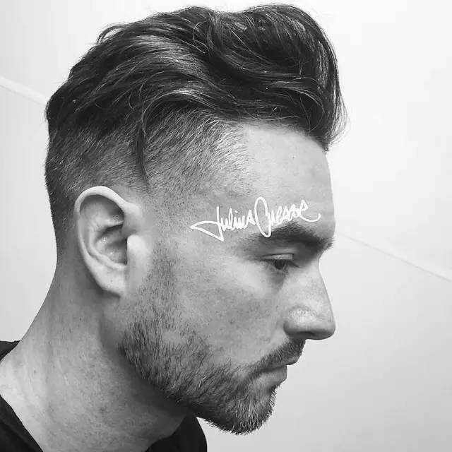 THE SIDE-SWEPT同样是Undercut家族的成员,适合平日喜欢留中长浏海的男生。THE SIDE-SWEPT字面意思是头发往前侧梳理,让削短的渐层露出、前额侧边略带浏海的发型。如果你是烫过头发或是有卷度的发型就特别适合SIDE-SWEPT UNDERCUT旁分哦! 向前侧梳,头发分单边 侧边头发上下层削短,做到工整的线条感 THE COOLESTTHE COOLEST UNDERCUT它被称为最酷的UNDERCUT发型,这样的剪发不但为传统的UNDERCUT增添不少当代品味,又不会有过份造型的顾虑,是个很不错的变化型态之一! 侧边齐短(不渐层打薄)+后梳油头 往上抓的发长约5 – 15公分,依照发长做出略显不同的变化 侧边用High Fade较高,长度也偏短 |