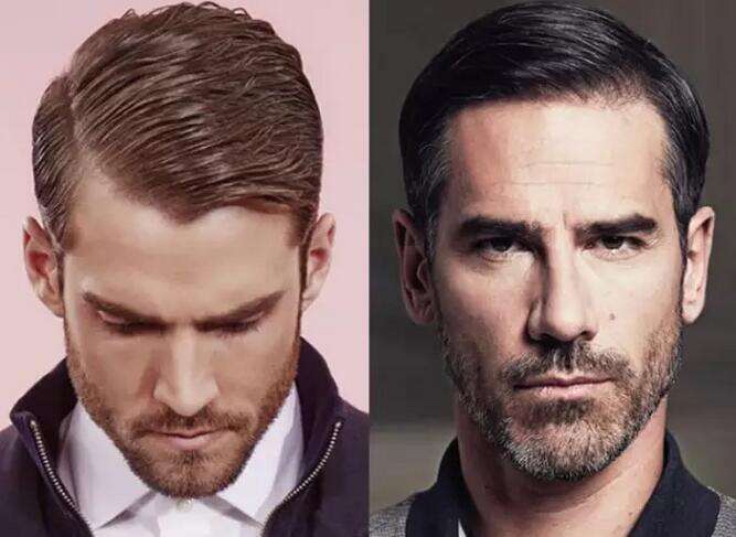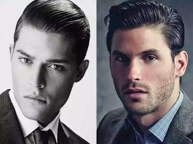男士油头发型 西装头还有一种常见的发型就是大油头,又称之为“西装头“,是将头发用发胶固定的一丝不苟,而且一定要有发亮的效果。 这种发型很复古,看上去比较严谨,适合商务男士或者一些重要的晚宴场合。 西装头还有侧分的款式,它们同样一丝不苟,有着精准的长度和分界线,比较服帖,斯文整齐又十分优雅,但有时候会显得有些刻板老派。
