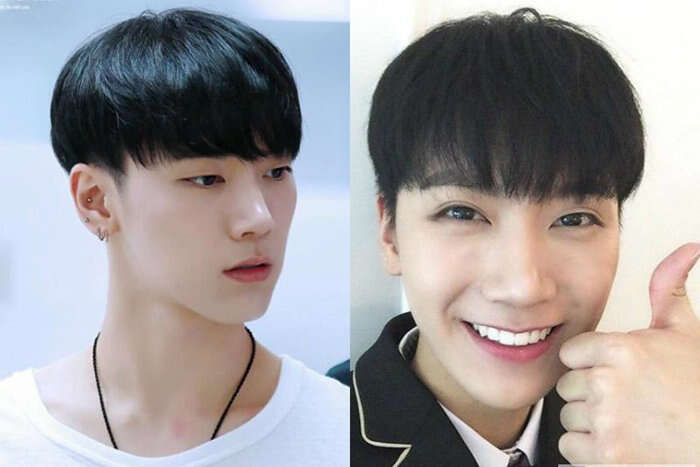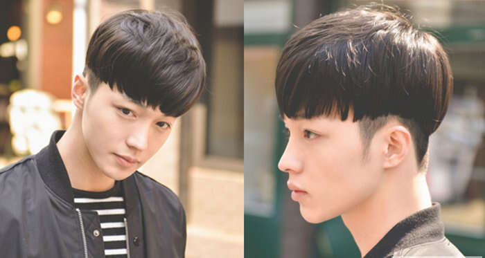 犹如一个锅盖直接罩在脑门上一样的锅盖头发型,十分修颜显嫩,将两边头发铲掉的设计加上齐平的刘海,可爱但不影响帅气,给人一种萌萌地酷感!