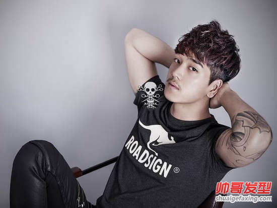 标题:男生发型设计:八字胡男生韩式微卷发