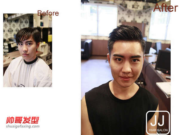 男生发型短发油头作品~ 2016年男生的流行发型.这款发型是长油头发型去延伸做改变的,以往的油头发型的长度都是比较长的.这款改良款的短式油头,调整以往长油头发型.的顶部因为长度太长塌陷的问题,显得更佳利落.及阳光..蛮适合运动健身的阳光型男们。