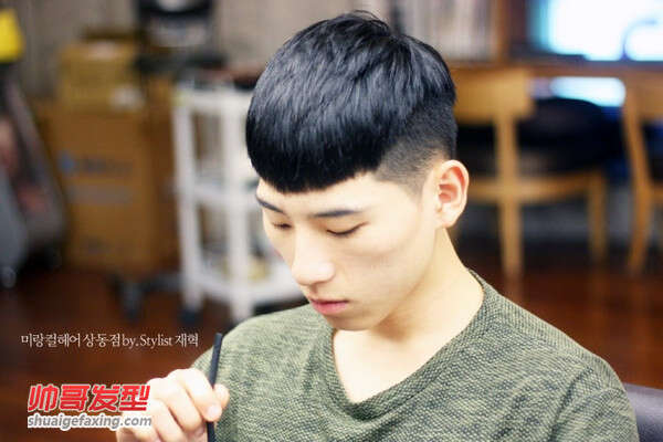 标题:男生西瓜皮发型图片 四周剪短头顶留长发的波波头