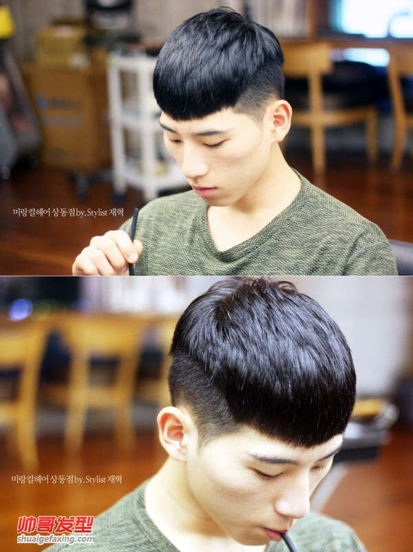 男生西瓜皮发型图片 四周剪短头顶留长发的波波头