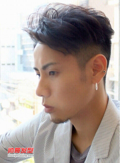 两侧削底的侧分短发,铲青短发戴耳钉加上小胡子显得格外酷而且潮。 |