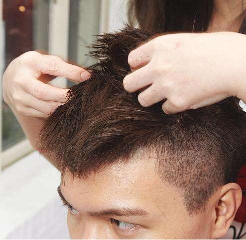 STYLE1:莫希干风格Mohican Style 这种两面光的清爽发型,带点北美塬住民的莫希干(Mohican)风格,因足球金童贝克汉广为人知,能有效拉长头型,修饰五角脸及圆脸人的脸部线条。但也因这种发型会令视觉纵向延伸,下巴尖长的叁角脸人就较不适合。 与设计师沟通时,只要将两侧剃到约剩1cm左右,顶部保留丰厚发量,并略打层次就好。造型时向前抓出毛束感,浏海再向上微拨。若配合部分挑染明亮发色,将可让线条感更明显。 适合发量:普通 浓密 适合发质:普通 粗硬 适合脸型:圆脸 瓜子脸 五角脸 造型诀窍 适合发品:发蜡、凝土、定型喷雾(非必要) STEP1 用指尖挖出少许发蜡,再用双掌搓匀。 STEP2 头发洗完用毛巾擦半干(稍用喷雾器喷湿再擦干也可),将发蜡以双掌搓上发梢,均匀覆盖所有发丝。 STEP3 用指尖稍微搓出发束,并拨往前方。 STEP4 以吹风机吹干头发,并可运用发蜡遇热变软的特性趁机塑型。(有喷定型喷雾的型男,记得喷完后再稍加整理便完成啰!) |