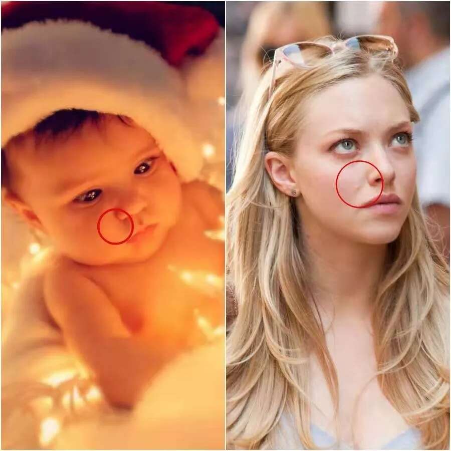 但是看她小时候的照片,鼻翼两侧的纹路已经比别人更深一点了。