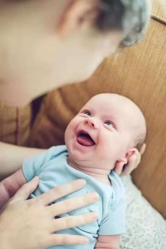 婴儿脸上的当然法令纹,而是笑纹。
