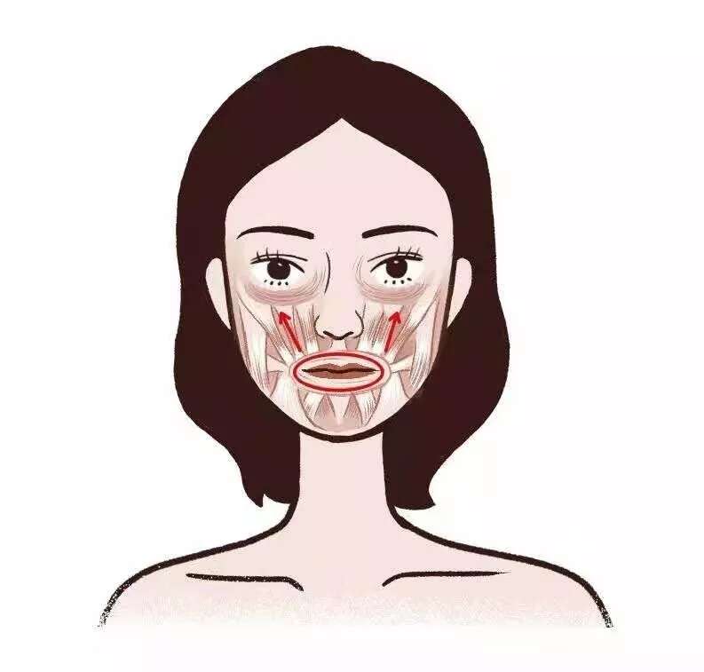 这主要是因为,我们脸部肌肉是向上提升的,嘴巴周边的肌肉是环状的,笑或是抿嘴的时候,嘴巴的肌肉会收缩,增加了脸部肌肉和嘴边肌肉的高度差。这使得鼻唇沟的位置产生凹陷,形成表情纹,久而久之,变成法令纹。