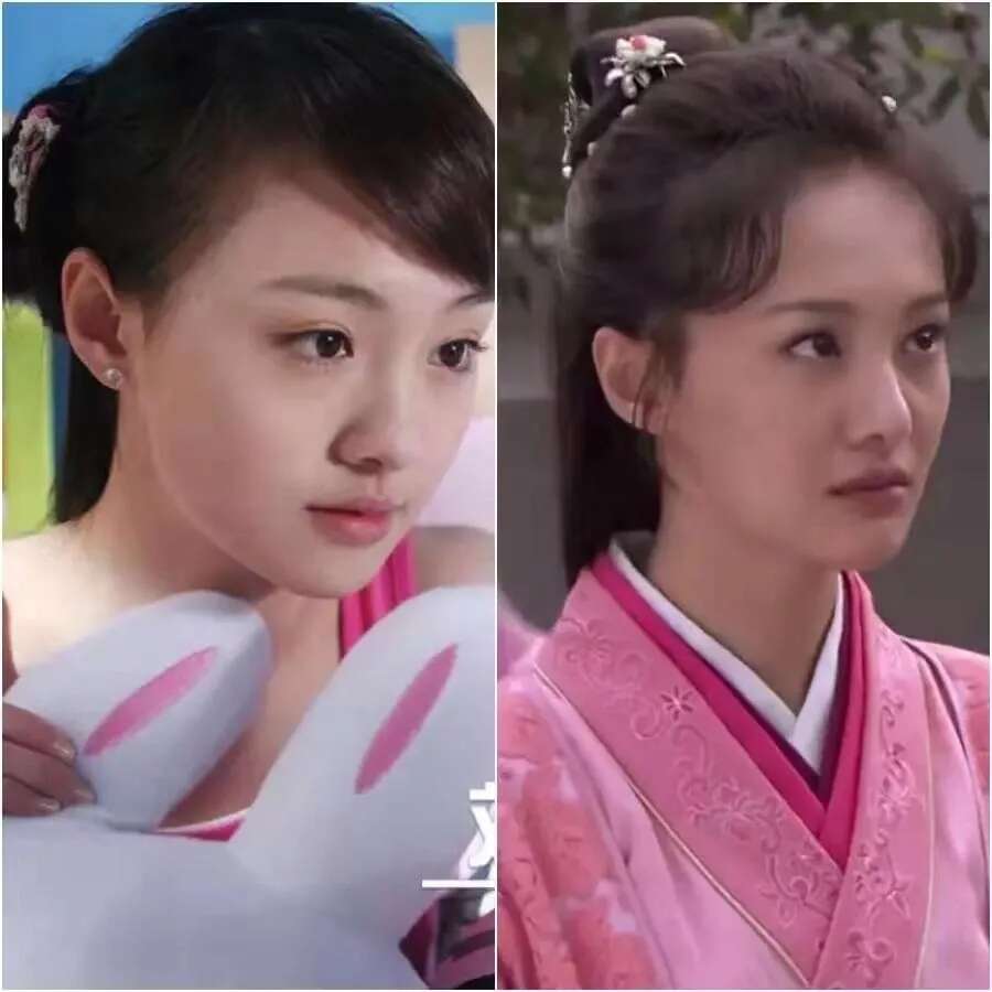《家有儿女》里面,杨紫笑起来的时候更明显。