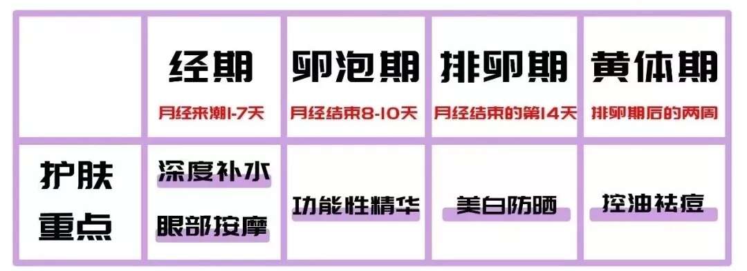 注意!这是护肤的黄金时期!水油处于平衡状态,肌肤饱满,毛孔变细,皮肤的吸收力也加强了不少。皮肤状况最为稳定,任何保养都能有效进行。