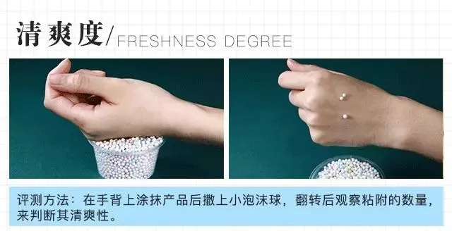 从这张图片的测评结果可以看出,奢脉极地修护面霜无油无腻,轻薄质地赋予它清爽的特性,很多人不喜欢面霜的原因就是怕其粘腻厚重,但是奢脉的这款清爽型面霜完全不会,均匀涂抹后很快会被吸收,肌肤水润柔滑,待产品吸收后,粘附泡沫球也仅留3颗,这对比普通面霜清爽太多了。