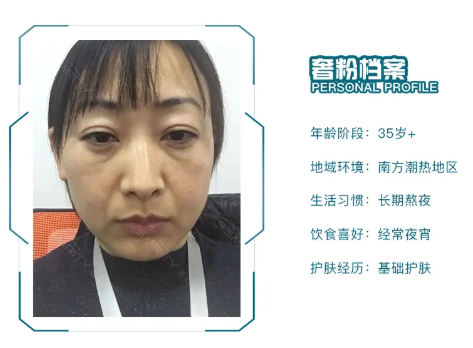 经过分析奢粉的肌肤状态,她的肌肤干燥粗糙,明显缺乏油脂营养、屏障脆弱状态,且曾被晒伤过肤色暗黄无光,属于氧化后的暗黄,再加上长期熬夜作息不规律,肌肤新陈代谢能力缓慢,已经产生色素沉积斑点。