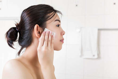 用卸妆水浸湿卸妆棉,待卸妆棉充足浸湿后将其敷于面部5-10秒。等脸部的彩妆产品充分融化,再用浸湿的卸妆棉逆着皮肤毛孔生长的方向由内向外擦拭脸部,从脸颊擦拭到发鬓然后擦拭前额、鼻头、嘴巴及下颌部分,直至卸妆棉上没有彩妆残余。用常温水冲洗,搭配氨基酸成分的洁面慕斯,最后在用一次性擦脸巾擦干就可以了。