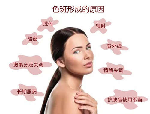 如今很多女生生活很紧张,没有规律的作息时间。导致自身免疫力低下,内分泌失调,使体内自由基活化,从而增加黑色素异常分泌。