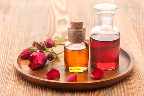 蔷薇油和玫瑰精露均采用水汽蒸馏方法进行蒸馏,精油冷凝集中于瓶内,因精油密度轻,不溶于水,浮在上层,露在底层。但是精露中除了含有玫瑰成分外,还含有少量精油。优良的玫瑰果油呢,是从野生的蔷薇果榨取出来的。