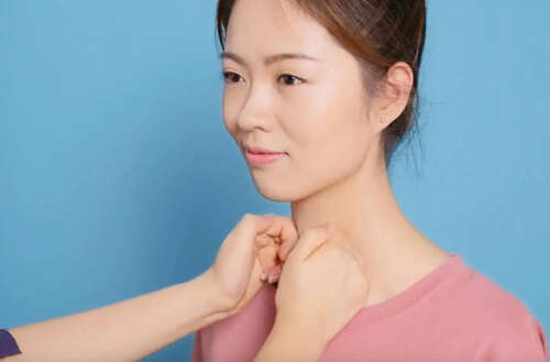拉伸颈部肌肉,从锁骨处向耳朵上方提起,有助于颈部的肌肤紧绷。用两个大拇指在脸部轮廓骨下面的淋巴组织进行按摩,可以帮助身体排出毒素。